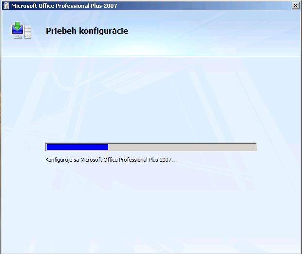 Nainštaloval som si MS Office 2007 Profesional Plus SK, pri inštalácia som zvolil zachovať predchádzajúcu verziu (MS Office 2003 Profesional SK). Všetko som nainštaloval do iného priečinka v Program Files ako Office 2003 vyskúšal som to spustiť a reštartoval PC. Potom vždy pri spustení napr. Wordu 2007 mi vyhodí okno "Priebeh konfigurácie" (pozri dole). Niečo podobné mi vyhodí aj pri Worde 2003 ale tam sa to len tak na chvíločku objaví a dosť, pri 2007 to trvá cca 30s až 1min. Viete mi poradiť ako sa toho zbaviť?