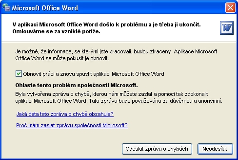 Re: Nespustitelný word