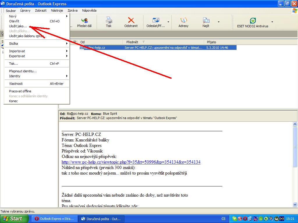 hroch123 píše:Když v outlooku najdeš v možnostech, údržba, složka úložiště, tak si ji můžeš změnit z přednastavené cestay třeba na jiný hdd nebo adresář. Vypneš a zapneš outlook soubory se pak zálohují tam do souborů s koncovkou dbx. Ty stačí pouze kopírovat.