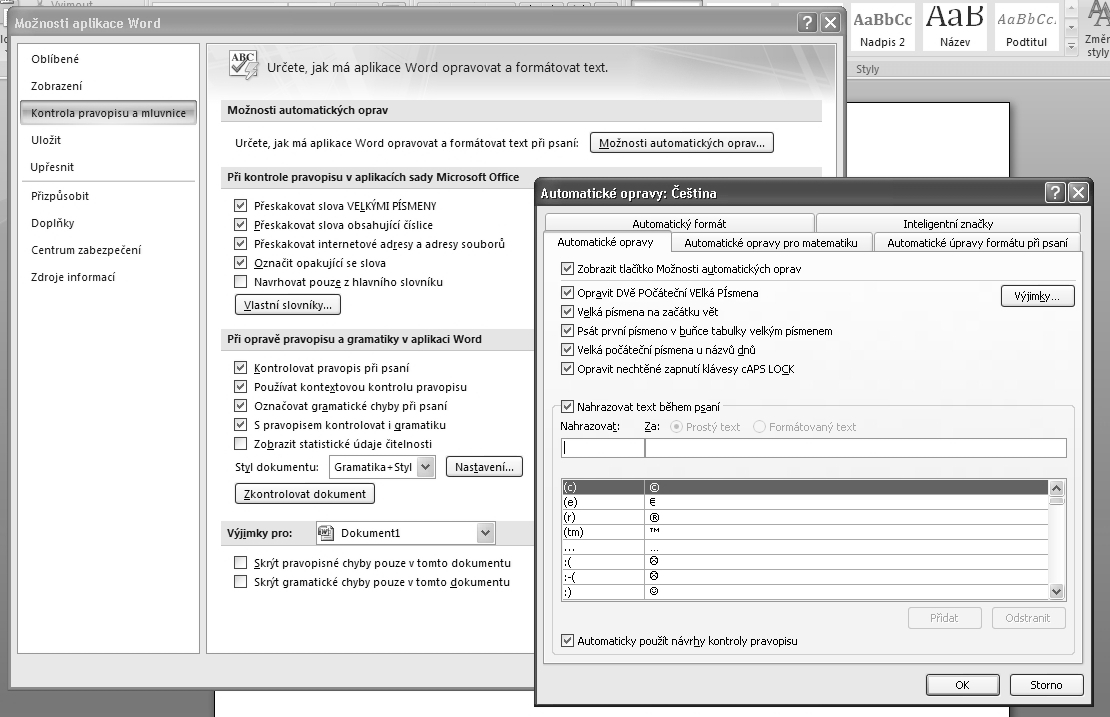 Víte někdo, co s tím? Samozřejmě se snažím psát, jak jen to jde, ale občas tam něco prostě skočí každýmu, nehledě k tomu, že od něčeho tam ty autoopravy přece jsou. Ale nefungujou. Strašně mě štve se tam furt vracet k tomu slovu a klikat na to pravym tlačítkem anebo to nedejbože přepisovat. 2003 mi to opravil sám. Dále mě pěkně štve, že mi to zeleně podtrhává COSI, co vůbec není chyba - kliknu na to pravým a ono to zelné podtržení zmizí, takže věta je v pořádku.