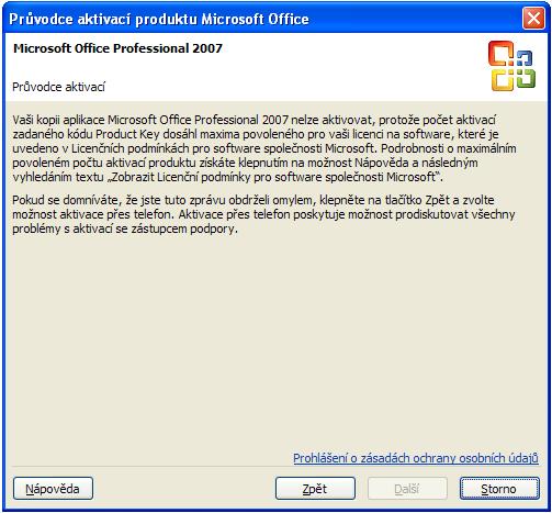 Re: Nelze aktivovat MS Office 2007