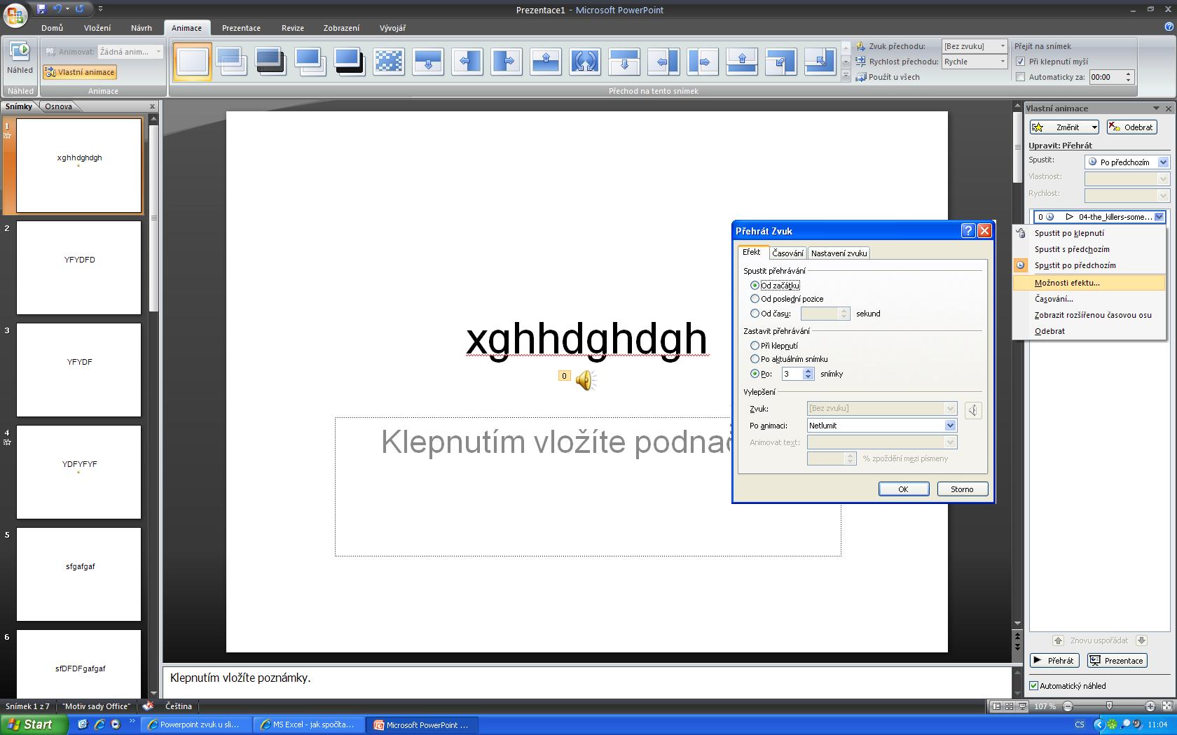 Powerpoint zvuk u slidů