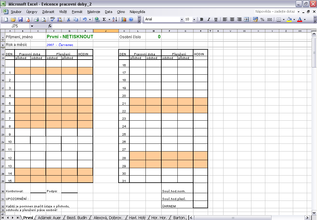 Dřív to dělala po jednom, teď jsem jí udělal makro, že udělá jenom jednu a po stisknut tlačítka se jí předělají všechny podle ty první (překopírují se). Jenže když sem se nad tím zamyslel, tak když udělá novej list (přidá další zaměstnance), tak ten už nebude v tom makru, takže se nepřebarví :|
