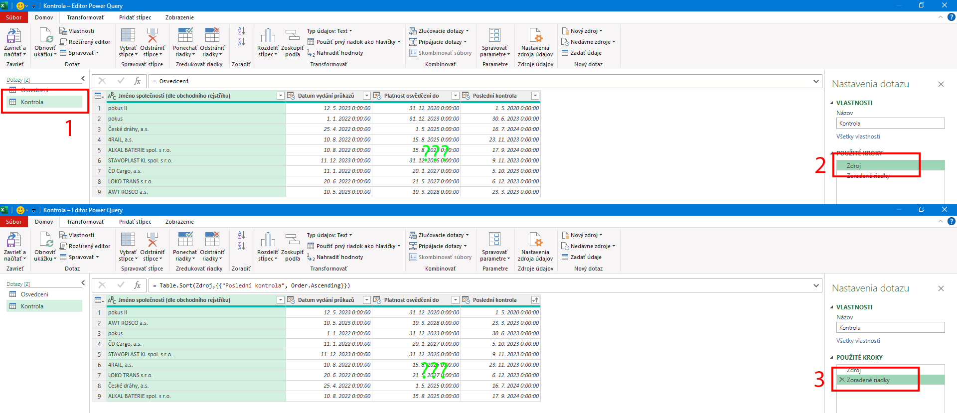 Mám výchozí zdrojovou tabulku dat o vydaných osvědčeních a na dalších dvou listech potřebuji mít výcuc z té zdrojové tabulky, ale v jiném řazení - naznačeno v příloze .