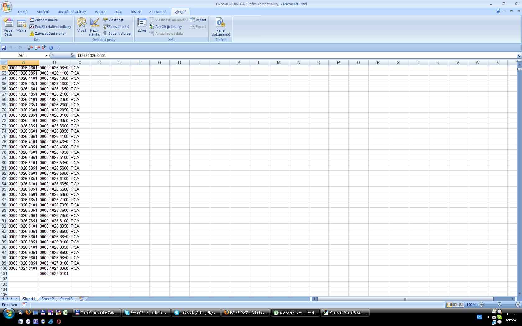 Tak se s tím zkouším prát. Makro mi funguje ale jenom tak, že musím stále ručně dopomáhat. Klikat na správnou řádku, poté spustit makro - 3 repetetivní kroky. .. To je hezký, už to by ušetřilo čas, ale ne tak jak si představuji. Jak toto donutit pracovat automaticky na celý list??? Nebo opravdu musím nahrát makro krok za krokem pro celý sešit a to poté aplikovat???
