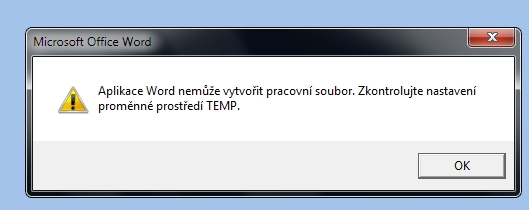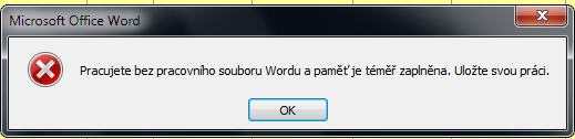 Bez jakého pracovního souboru ?? Paměť je zaplněna. A jaká? Operační? To není možný Uložte svou práci ? To je vtip ? Jak jí můžu uložit když se word po kliknutí na OK restartuje