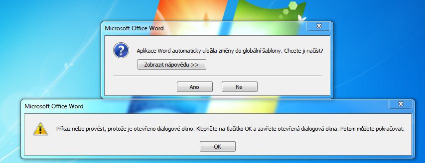 Vážení, potřebuji zjistit, kde se nalézá globální šablona Wordu. Nelze otevřít jakýkoliv vytvořený soubor např., *.doc, *.docx. Domnívám se, že vymazáním těchto šablon by mohlo dojít k opětovnému nahození systému. Přivítám jakoukoliv radu. Děkuji.