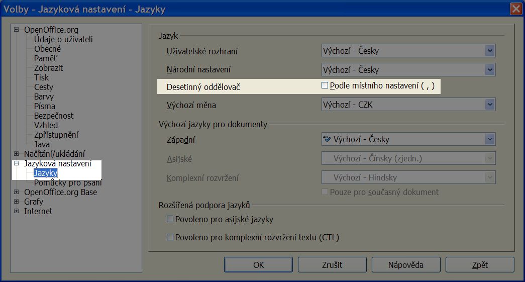 OpenOffice a Microsoft Excel numerickou tečku nerespektují a vnucují mi namísto ní čárku.