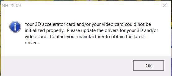 při spuštění hry NHL 09 mi vyskočilo okénko (viz. níže). Je to jediná hra, u které se mi stal tento problém. Drivery nepomohly, netuší někdo?