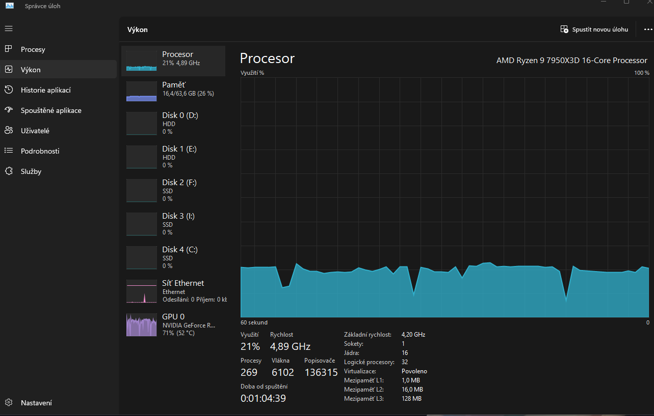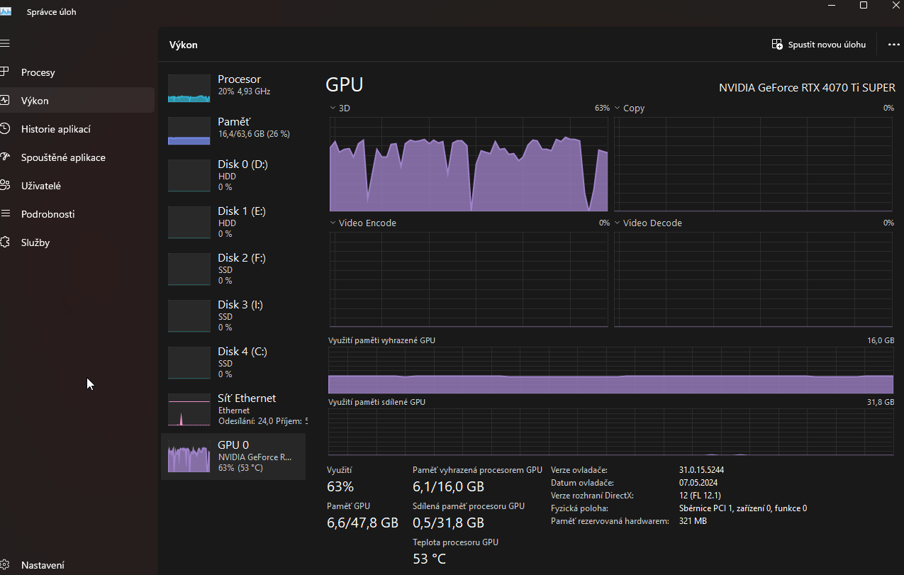 Dobrý den, potřeboval bych urgentě pomoct a už si vůbec nevim rady. Koukal jsem na jaký koliv návod ale nic nepomohlo. Přesněji řečeno: problém se prvně naskytl u hry: Tekken 8 pak Ghost of Tsushima pc a dalších her kde si zapnu DirectX 12. Když zapnu hru na nastavené HW specifikace grafiky dle hodnot podle kterých by můj pc měl hru vpohodě zvládnout bez problémů tak se po čase stane že asi po 20 minutách se začne hra sekat a to ve stylu jako že se začne sekat na 3 sekundy pak jede vpohodě a pak asi po 10 sekundách se začně zase sekat na 2-3 sekundy a zase jede vpohodě... a takhle to jede dokolečka než hru vypnu a musim počkat tak cca 30minut a pak jede zase hra vpohodě na 20 minut. Jak problém vypadá mužete vidět i na grafech od správce úloch jak procesor a grafika mají výchilky jakosi lapavého dechu. Mimo to v Gforce sledování počítače pro fps se zas ukazuje že hra jede vpohodě a při okamžiku sekání se vyjede do vysokých hodnot průměrná latence počítače. Pokud to půjde vše by mělo být v příloze. Drivery + windows update a Bios se snažim mít stále aktuální. Zkoušel jsem i pohrát si s nastavením grafiky ve hře ale na nic nemá vliv to že se to začne sekat tak či tak. Jinak muj pc je:AMD RYZEN 9 7950X3D, AORUS GF RTX 4070TiSUPER, G.SKILL 64gb, SEASONIC Platinum 850W, AORUS B650 PRO AX, 34" MSI MAG 341CQP OLED + 990 PRO m2 2x 1TB + 11fans.Děkuju za odpověď a vyřešení problému.