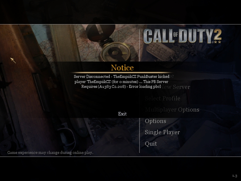 začal jsem hrat Call of Duty 2 na GameParku ale po 2 Minutách hraní mi vyskočí tahle hláška a Kickne ze serveru..