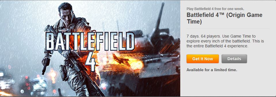 Chcete jsi vyzkoušet Bf 4 na 7 dní ? Teď mate velkou šancí po omezenou dobu, týden. Tj, že od doby, co to zapnete máte přesně týden na hraní.