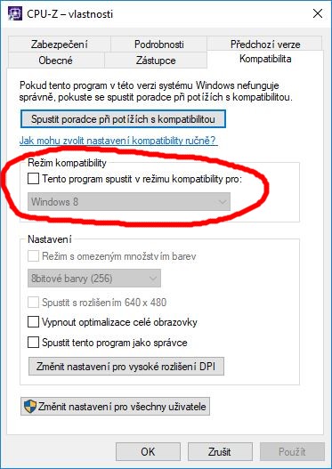 pravym tlačítkem myši na exáč, zvolit Vlastnosti, záložka Kompatibilita...