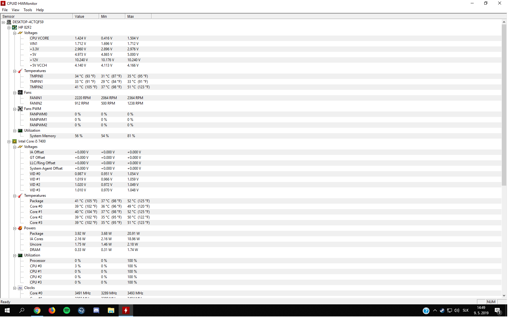 Tu sú snímky z HWmonitoru po dákych 8 min. záťaže PC.