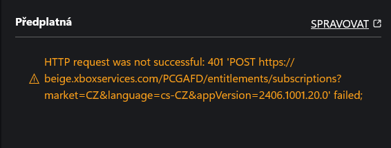 Dobrý den, neustále mě zlobí přihlášení v aplikaci Xbox na Windows 11. Pomůže když se všude odhlásím z Microsoft účtu a znovu se přihlásím, bohužel se to vždy vrátí zpět. Tady přidávám co mi aplikace hlásí... Děkuji