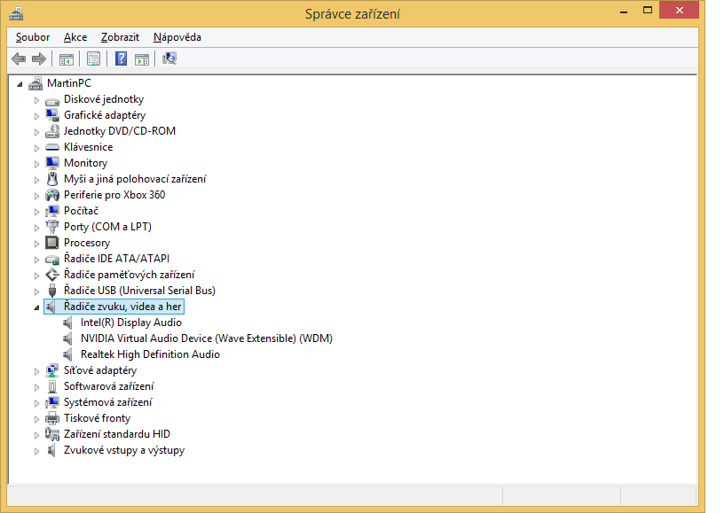Dej sem screen ze správce zařízení rozkliknutý na řadiče zvuku videa a her.
