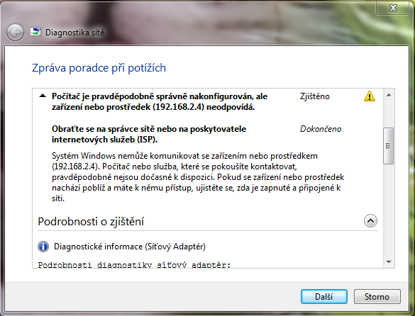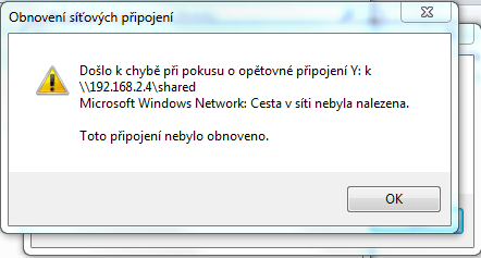 Re: Opětovné připojení některých síťových jednotek se nezdařilo