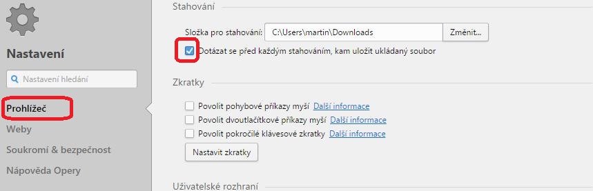 Jen pro upřesnění: odněkud něco stahuješ, klikneš na Stáhnout (nebo něco podobného) a hned ti začne stahování do složky, kterou máš zvolenou v menu Nastavení?