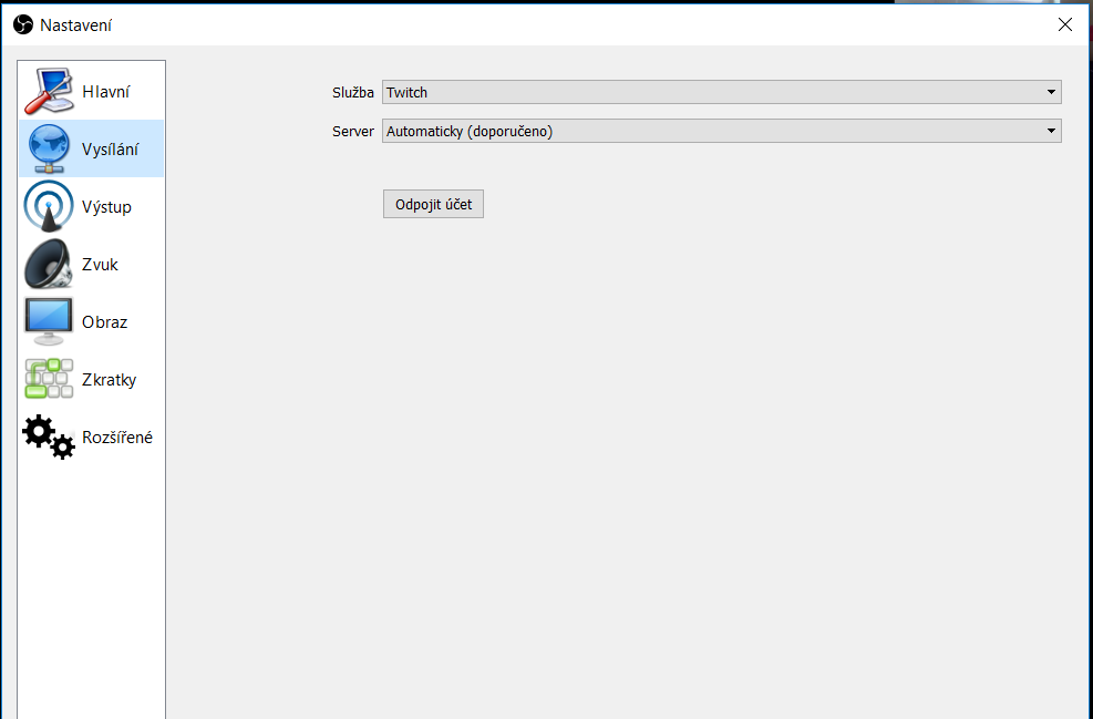 tak teda nevím proč tam to políčko na twitch key nemáte ale já ho tam normálně najdu (viz. obrázek). Jedině mohu doporučit zkusit přeinstalovat program nebo zkusit nastavit server třeba na ten co mám já.