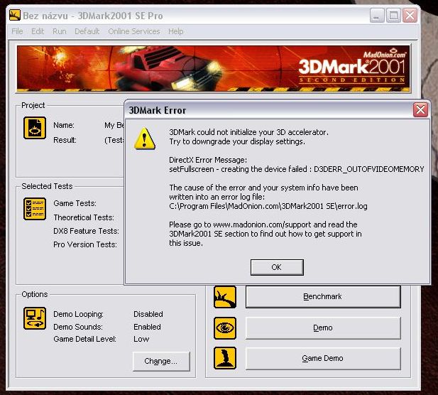 Jo mam codec pack all in one.Ted sem si vsiml ze mi 3D Mark 2001 vyhodi naky okno dyz ho zapnu.