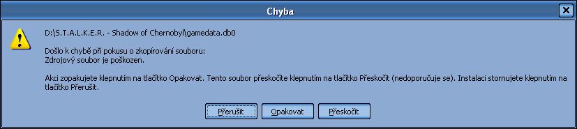 u toho Stalkera mi to delalo taky. proste musis instalovat tak dlouho dokud se to nenainstaluje