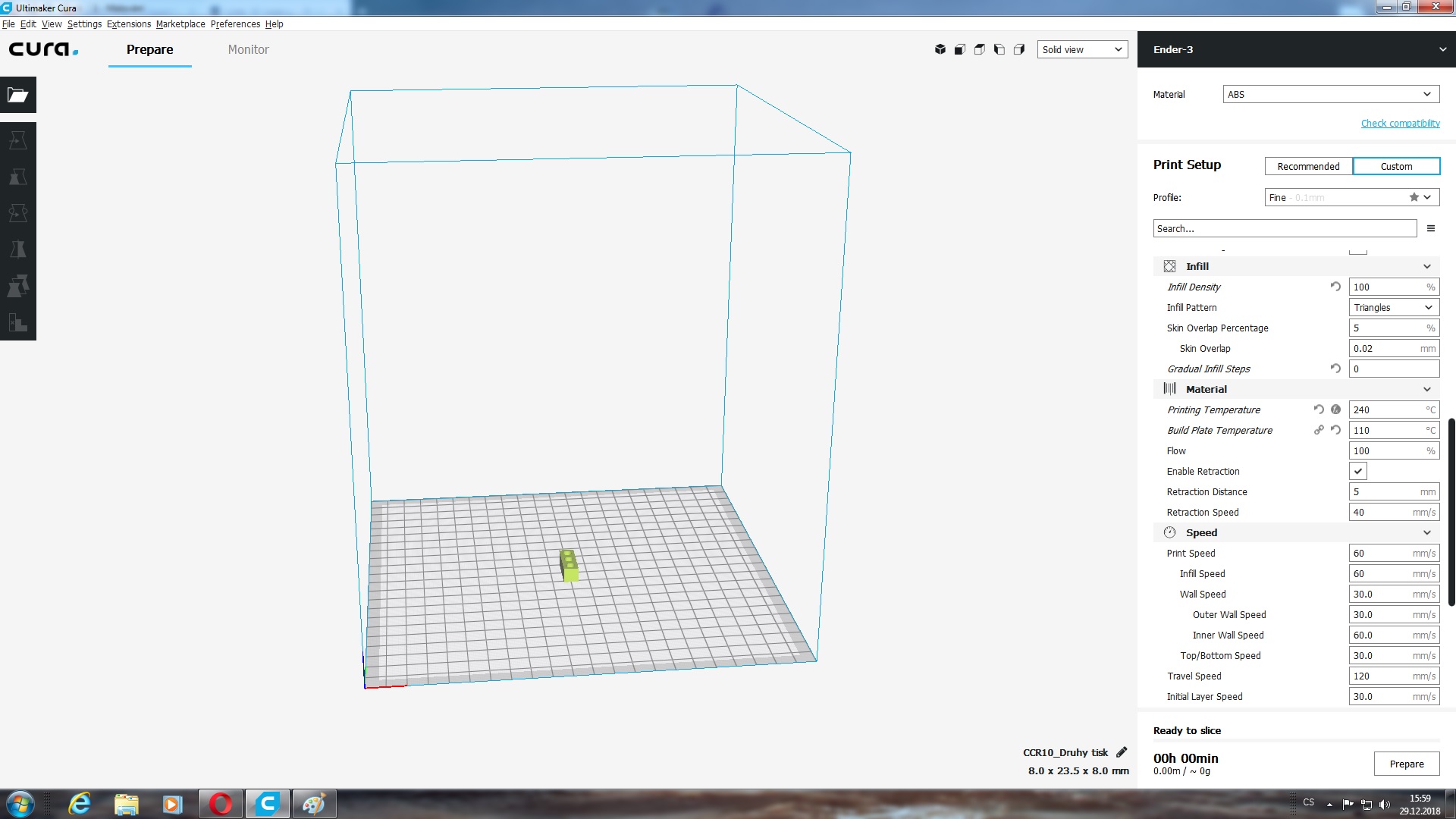 Rychlost tisku urcuje hlavne dobu, za jak dlouho to bude a spolecne s rychlosti ventilatoru
