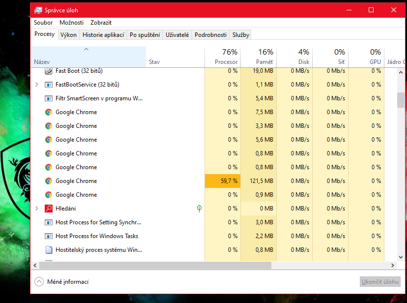to by ale dělala každému, nebo já nevím ... koukal jsi na podrobnosti pod tím procesem? Třeba Firefox má pod sebou cca 9 dalších, některý z nich "papá" ...