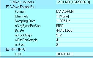 Formát DVI ADPCM,mono a 4bit - zkoušej to "
