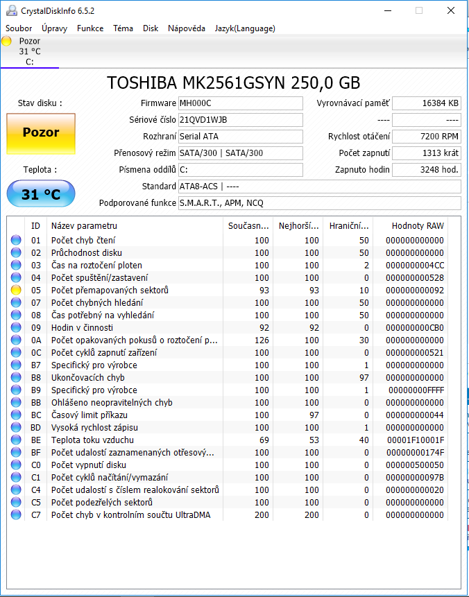 C7 200 200 __0 000000000000 Počet chyb v kontrolním součtu UltraDMA