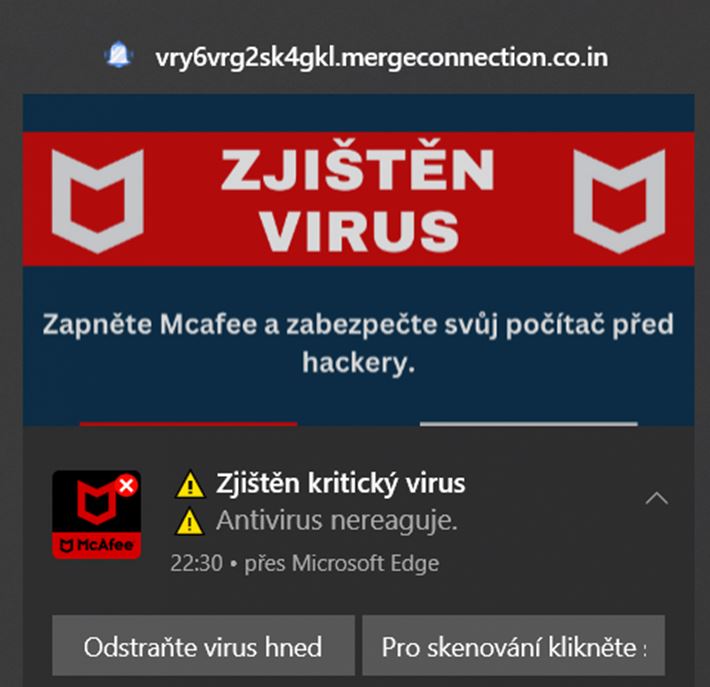 Ne ne, vypadá to, že je to "Fake McAfee Pop-up Alert", ale musím se toho nějak zbavit...