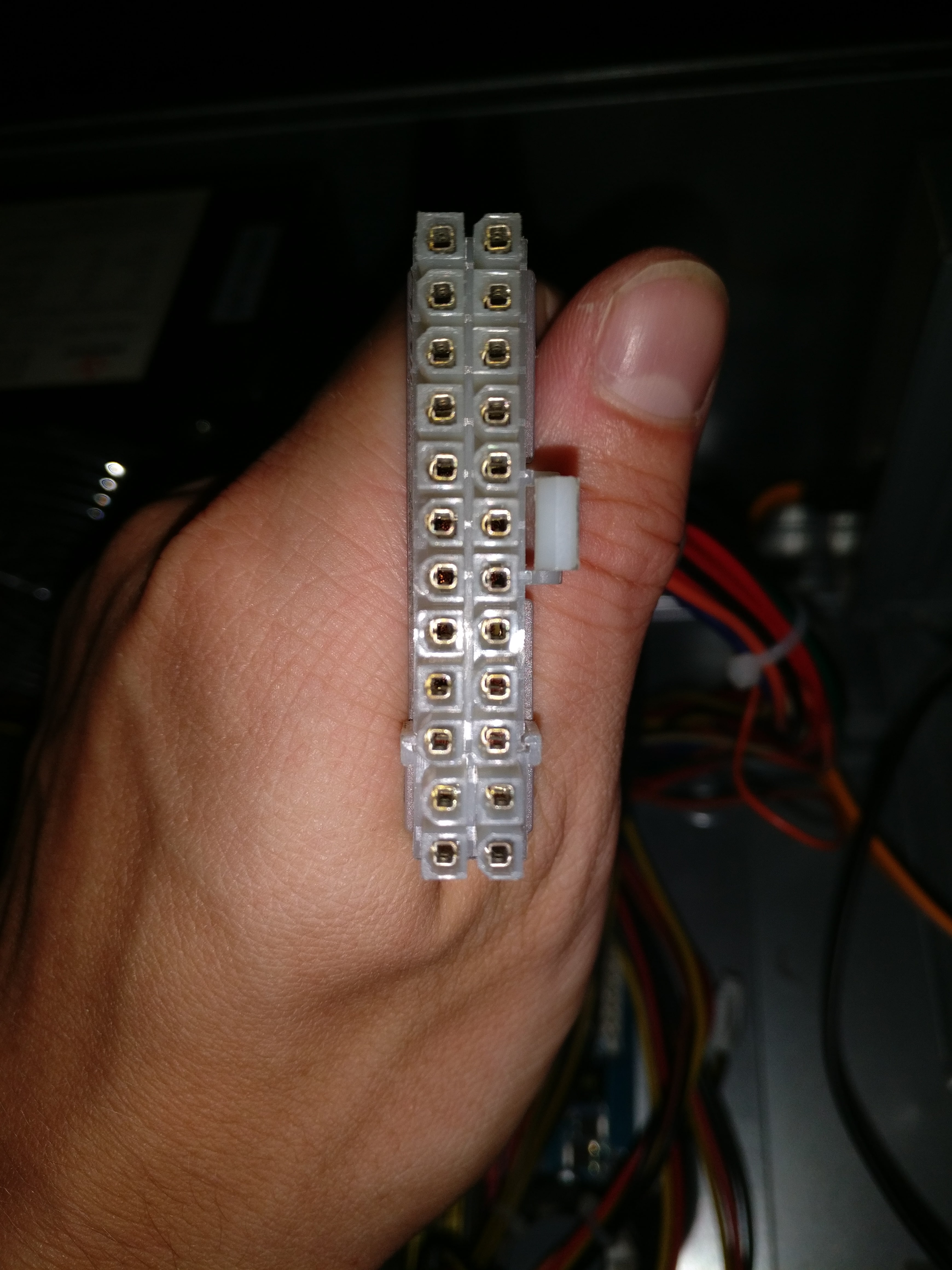 Připojuji fotky - myslím, že je to 24 pinový konektor na napájení základní desky a 4-pinový konektor k napájení procesoru.
