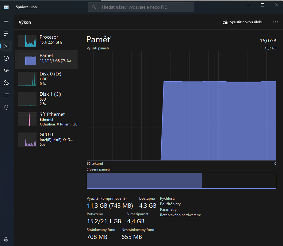 U mě mám trvale 15 Gb z 16 GB využito i přestože správce úloh ukažuje čerpání tak 4 GB jenom to mi 10 GB žere systém? Spíše to ten Windows ukazuje jako všechnu obsazenou pamět a vůbec neřeší, že z těch 15 GB, které ukazuje obsazené je jí 11 GB k uvolnění (použití), jinými slovy je skoro volná.