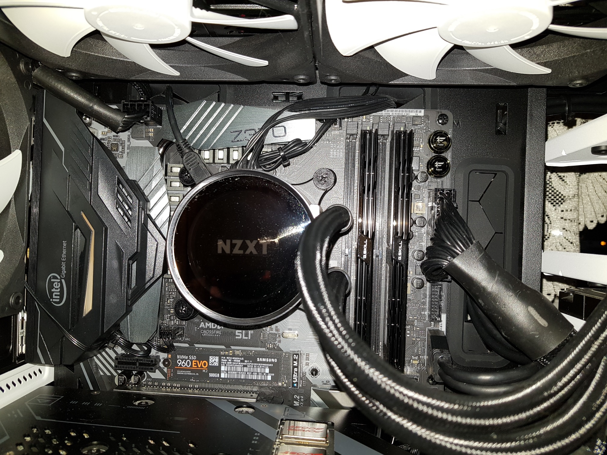Jo a už jsem chtěl psát, že CPU_FAN nikde nevidím ačkoliv v biosu je a někde tam prostě musí být, hledal jsem kolem CPU, ale až teď jsem si toho konečně všiml, je to schovaný nahoře zatím Z370 krytem:
