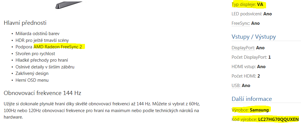 První monitor s podporou Freesync 2: http://www.anandtech.com/show/11530/sam ... 2-monitors