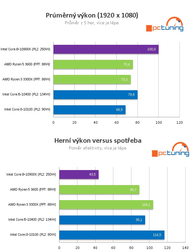 Výsledky: Z testu vyšlo že je 10400 výkonější i úspornější než ryzen 3600.