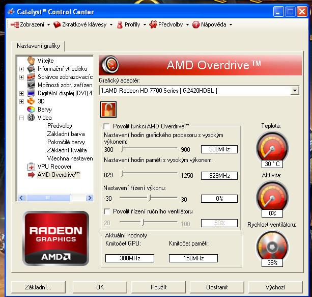 Tak pánove grafika uz je v PC :) odinstaloval jsem stare ovladace a nainstaloval nove a musim rict ze je grafika zatim ticha jak blazen oproti stare.. uvidime pri hrach ale stara rvala i bez zatizeni :) hodim sem screen toho AMD OVERTIME (nebo jak to je) pokud to dobre chapu jedna se o taktovani grafiky se kterym mam vsak nulovou zkusenost a proto se ptam zda je to dobre nastaveno... (nerad bych aby sem ji zbytecne brzdil ci "precenoval") dík! :)