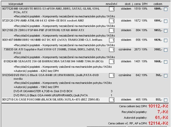 Tady mám jednu sestavenou.Je to z TS Bohemia.Snad jen ty paměti bych vyměnil za 2X1GB DDR2 800Mhz.