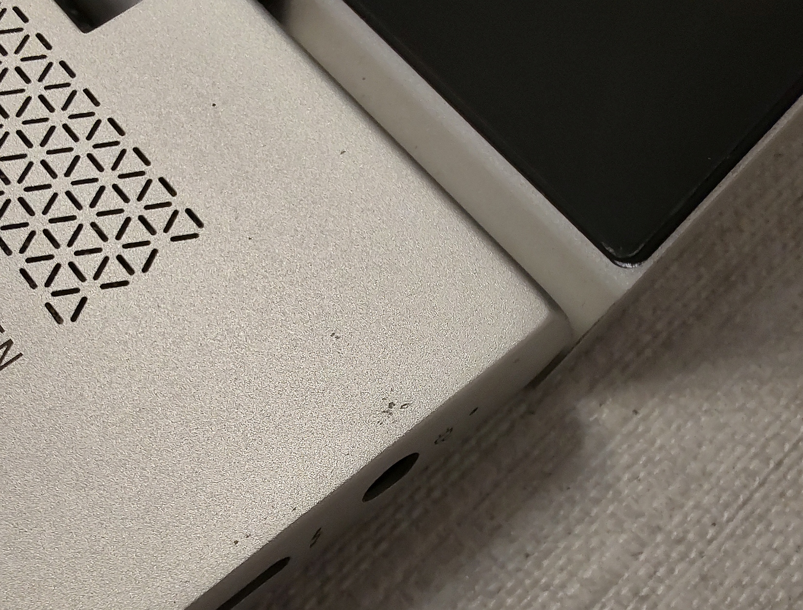 Protože se předchozí Elitebook osvědčil, tak jsem dostal za úkol sehnat podobný. Našel jsem na Gigacomputeru za cca stejnou cenu HP Elitebook 830 G6, opět A kvalita, se čtyřjádrovou i5 8365U, 8GB RAM a 256GB SSD. Dorazil kus mírně obouchaný lus, poškrábaný na několika místech, ale největším problémem byla vada na displeji viditelná nejvíce pod úhlem. Zdroj byl bez redukce, rovnou s malým konektorem. Reklamováno na pobočce, jako náhrada objednaný nový kus. Po týdnu jsem si pro něj jel a na prodejně dostal do ruky další obouchaný kus, výrazně promáčklý mezi napájecím konektorem a USB a bez poloviny gumových nožiček. Na to že to měla být taky A kvalita nic moc. Naštěstí byl na prodejně k dispozici ještě jeden kus (jen úplně vybitý), ten má taky pár malých skábanců (ty jsou na hliníku vidět), ale nic takového, jaky ty dva předchozi kusy. RAM opět jeden 8GB modul, SSD tentokrát jen SATA Samsung PM871b, zdroj opět s redukcí. Ventilátor nemá tak svištivý zvuk, jako ta G5 koupená před 3 mesíci. Baterie má 55 cyklů, z původních 50Wh kapacitu 35Wh, při větší zátěži vydrží 2,5h.