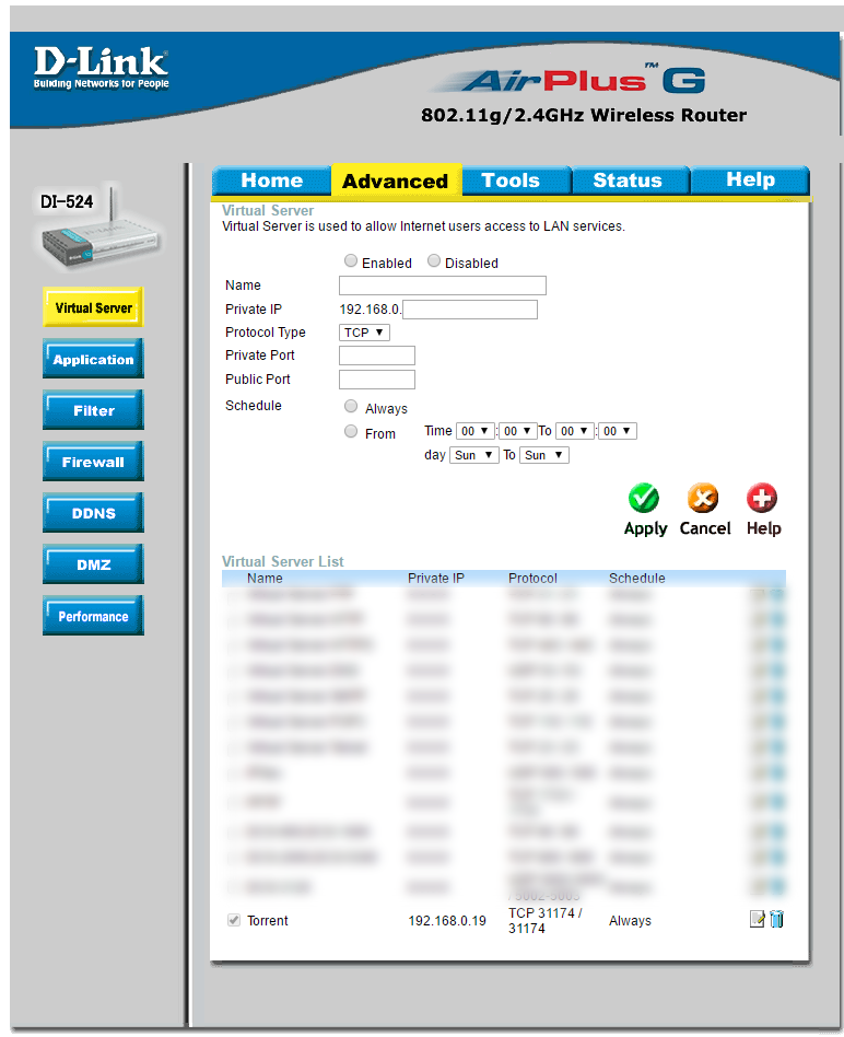 Není divu. Nastavuješ port triggering přes virtual server. Port forwarding je něco jiného.