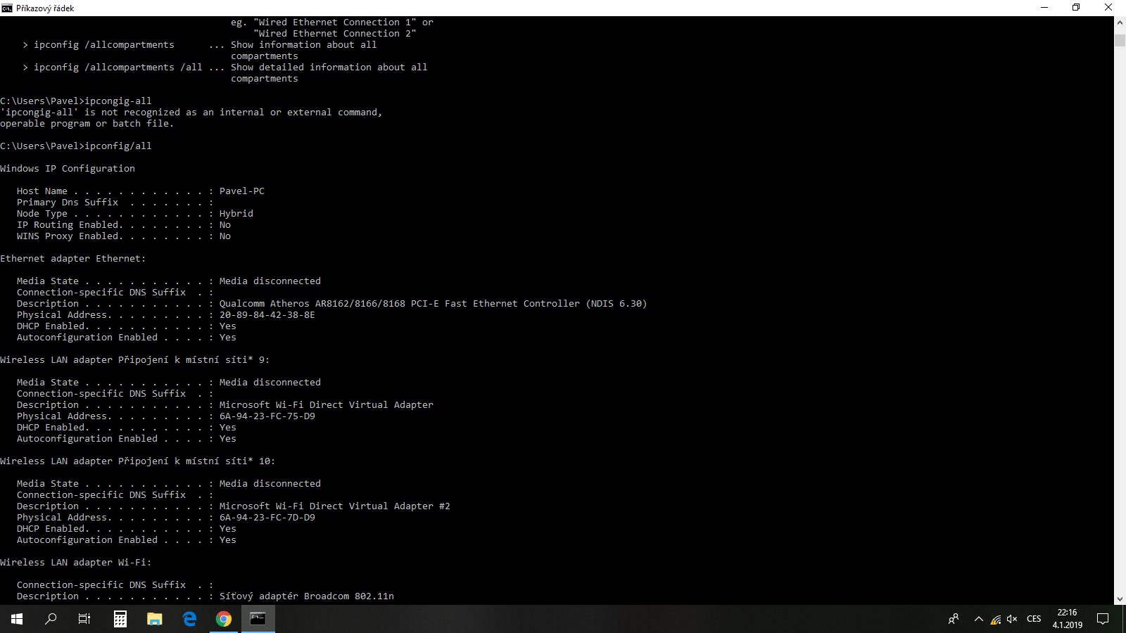 Ovladače mám nejaktuálnější,zkoušel jsem i připojení dsn od googlu a nic nepomáhá. Na starém routeru který měl přes 7 let se mi tahle chyba nevyskytla. Jelikož dosloužil koupili jsme nový router. Na něm se začala chyba objevovat. Mysleli jsme si že to je chyba routeru tak jsme koupili současný router (TP-Link archer C20) a chyba se zase objevila. Když kliknu na vykřičník a dám opravit, připojení se resetuje a vypíše mi výchozí brána není dostupná.