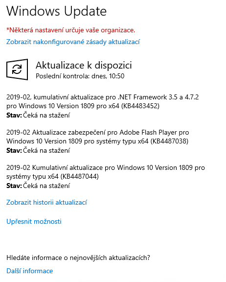 využívám pro aktualizaci klientů („windows 10 x64 pro build 17763.253“) aktualizační server WSUS. Ten běží na srv 2012R2 na verzi 6.3.9600.18838. Problém je ten, že klienti aktualizaci vidí, ale nestáhnou ji. Stáhnou ji pouze, až po přihlášení do internetu. Což je pro mě nežádoucí.