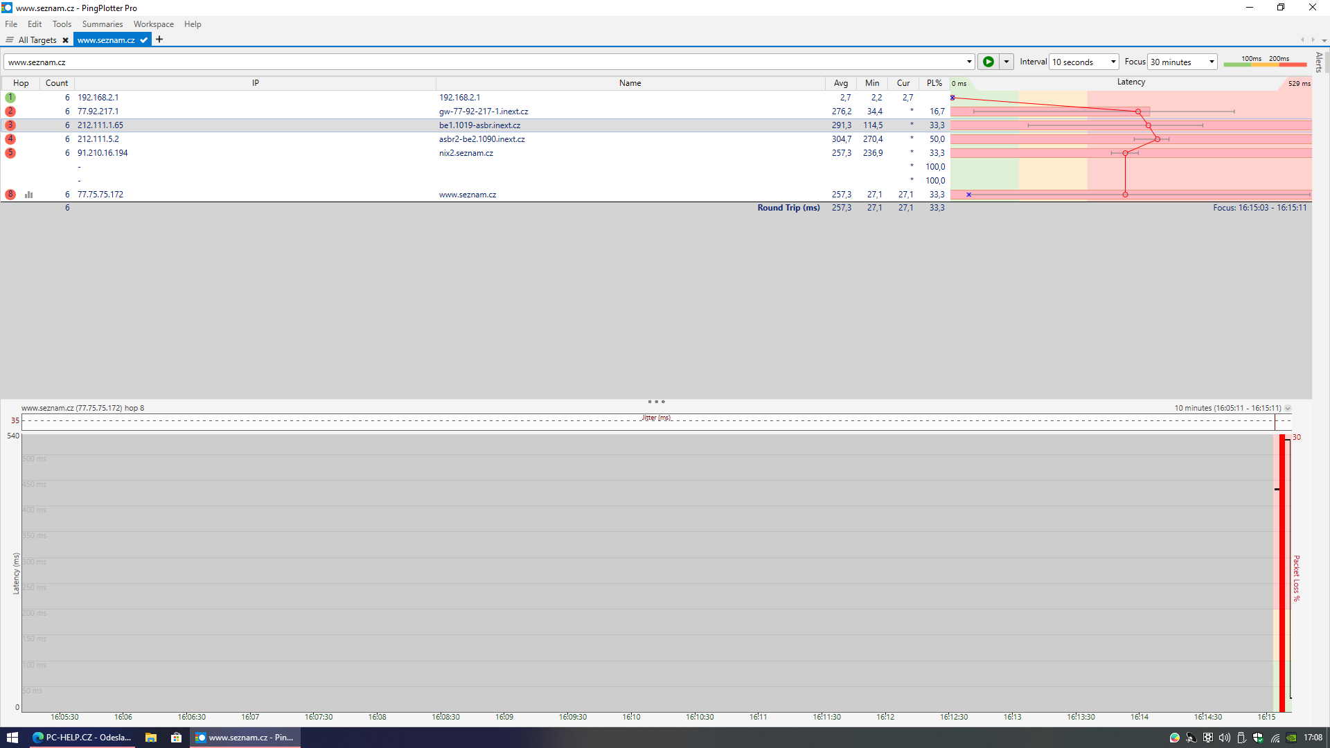 - screen pingplotter dle návodu.