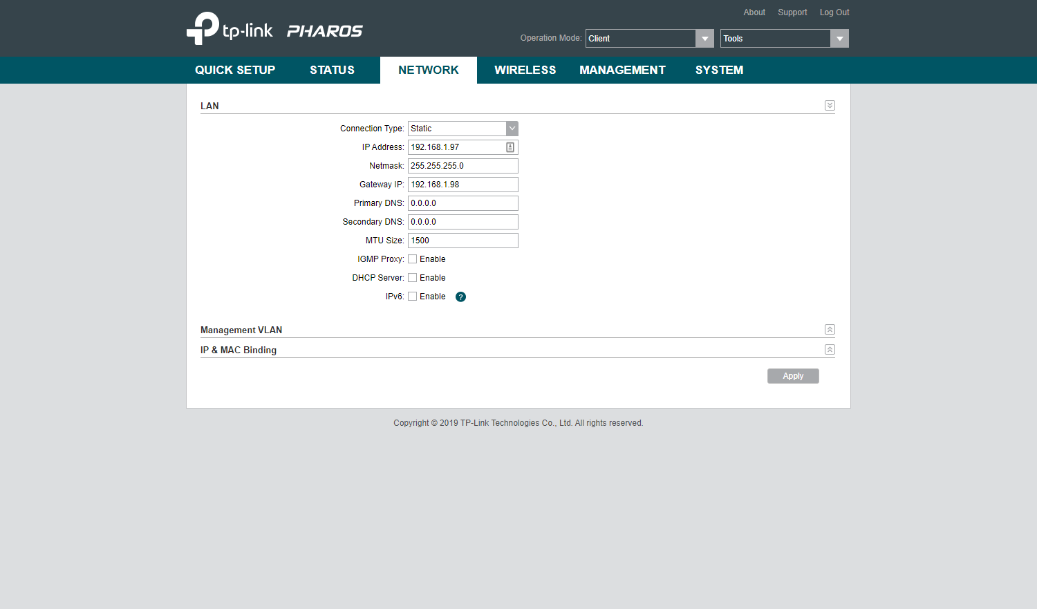 Takže na CPE220 v záložce Network vypnout DHCP?