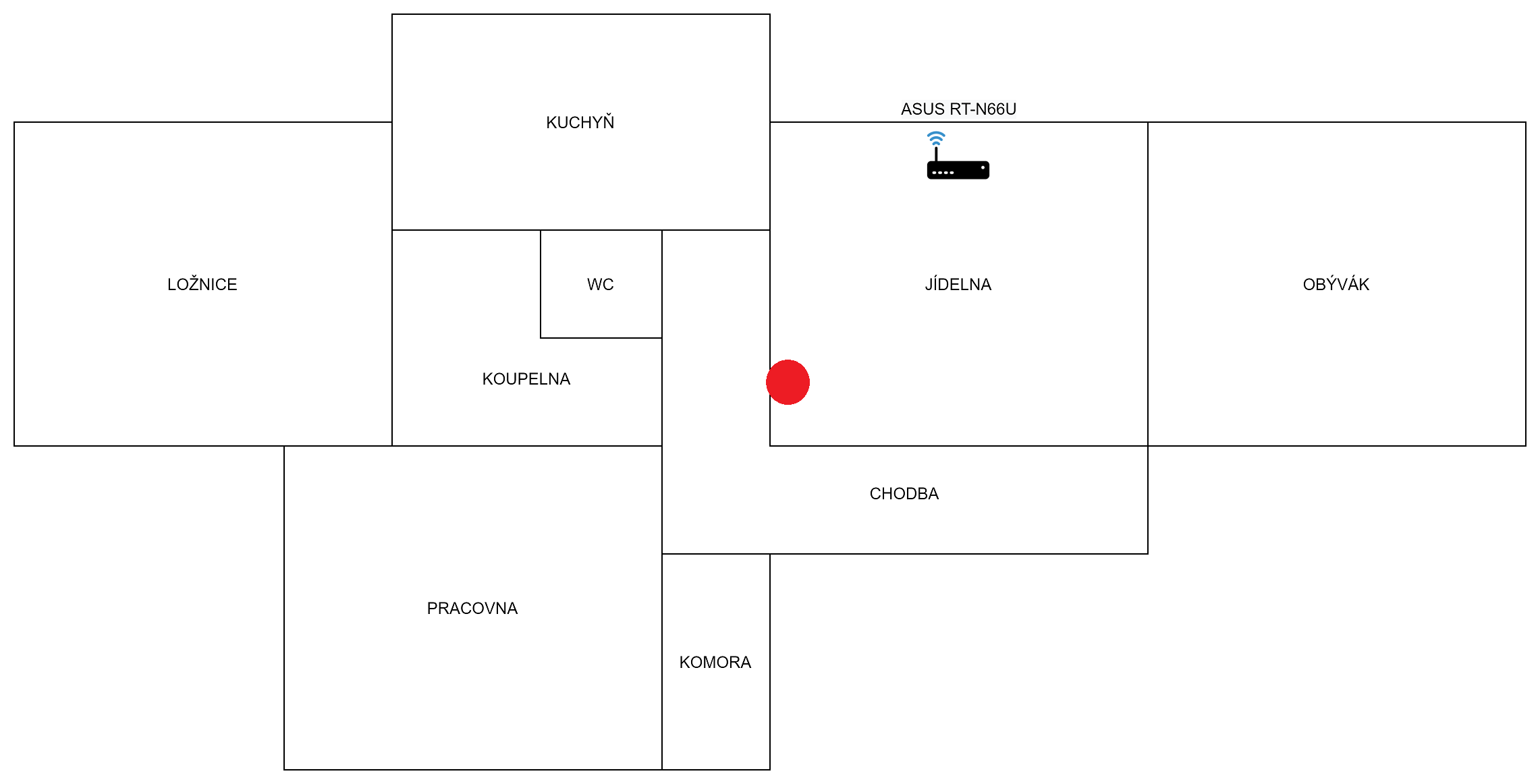 Abych uvedl mou problematiku na pravou míru. Původně jsem měl pouze ASUS RT-N66U uprostřed bytu (viz obrázek) a ano před 7 lety jsem měl převážně veškeré zařízení připojené na 2,4GHz pásmu. Bohužel jsem v pracovně a příležitostně v ložnici dosahoval velmi slabého signálu. S umístěním routeru a nastavením jsem experimentoval 1-2 roky, ale bez úspěchu. Jsem si vědom této situace zahlcení pásma, ale jelikož má byt rozlohu 130m2 a nejedná se klasický komunistický panelákový byt, tak jsem musel situaci vyřešit. Umístění routeru bylo možné pouze do 3 místností (obývací pokoj, jídelna nebo pracovna), tak jsem se rozhodl pokrytí rozšířit o další WIFI router. Bohužel jsem BFU a nechtělo se mi doufat a dále experimentovat s jedním silnějším WIFI routerem. S konfigurací dvou routerů jsem byl téměř 5 let spokojený, vše fungovalo jak má a já nemusel nic řešit. Dnes už mám téměř vše připojené na 5GHz, až na výjimky jako je tiskárna a případná návštěva. Jak jsem již psal, poslední rok používám NAS jako hlavní uložiště domácnosti. Tím jak se poslední rok vše soustředí na práci/výuku z domova, tak mi asi přestal výkon stačit a rád bych byt pokryl 5GHz AC/AX signálem. Samozřejmě také preferuji kabel, proto 5GHz WIFI mám hlavně kvůli mobilním zařízením.