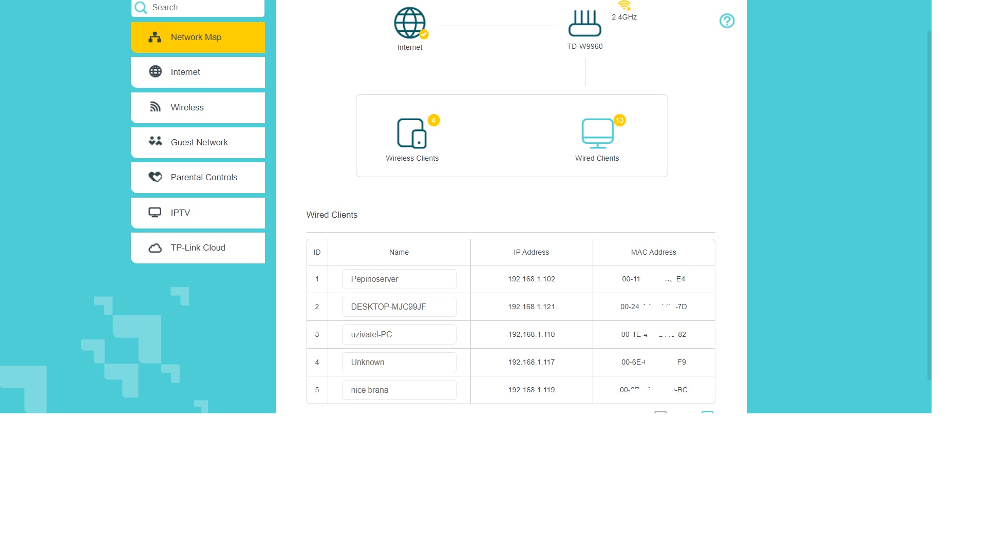 Tp link VR 400 nezobrazuje ip adresy zařízení v síti