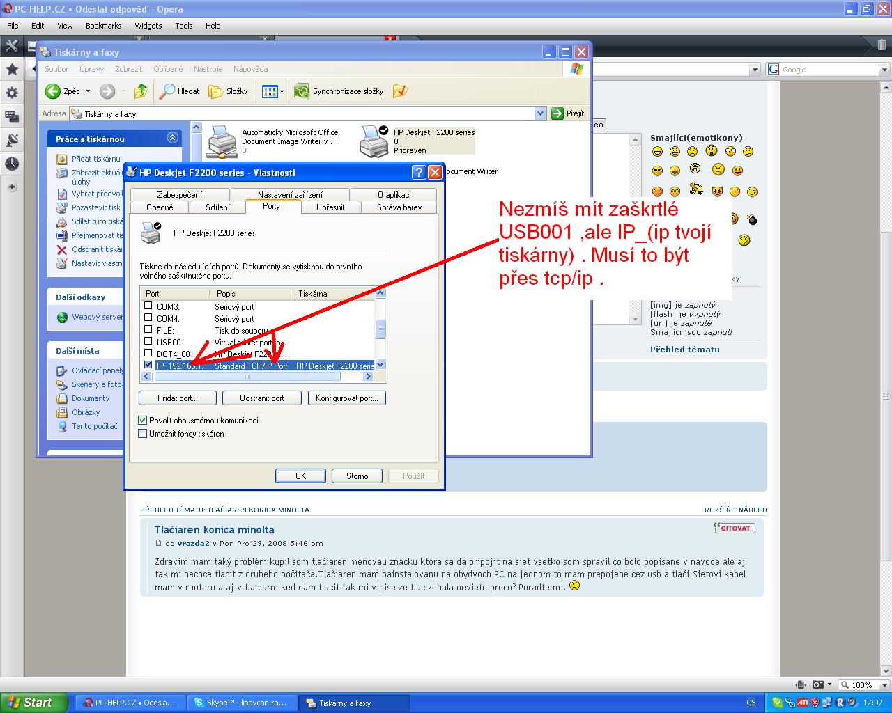 2. Pokud ano, pc si myslí ,že má tisknout jako obvykle do usb.