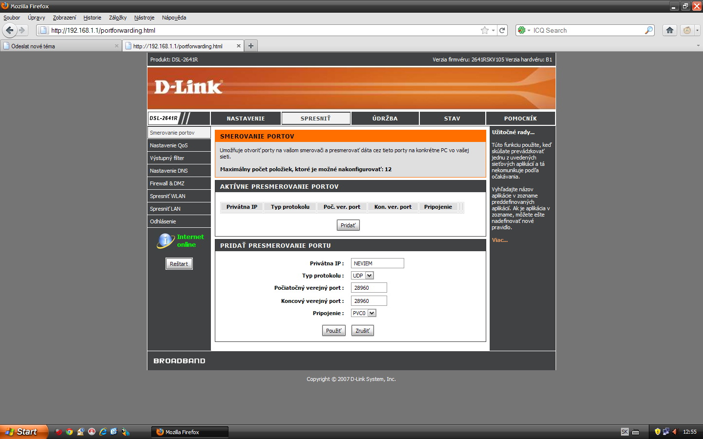 Re: Otvorenie portov na routri D-link Dsl 2641r