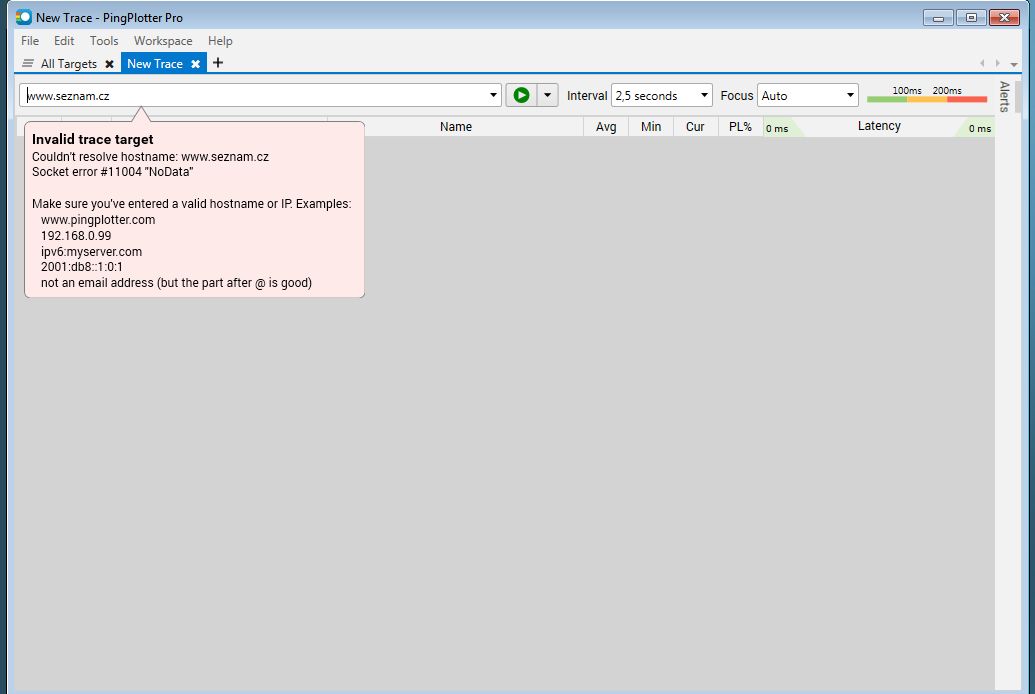 Pingplotter při výpadku