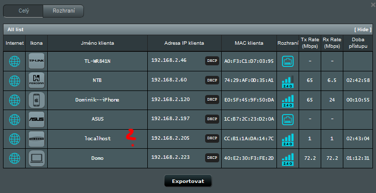 Musel jsem ti to prinstcreenout, protože tomu absolutně teď nerozumím, je tam totiž jako local host jak vidíš SAMSUNG, a samsung by absolutně na router být napojen neměl, ani žádné zařízení samsung nemám a mám snad i takový pocit, že se muj iphone za ten samsung vydává