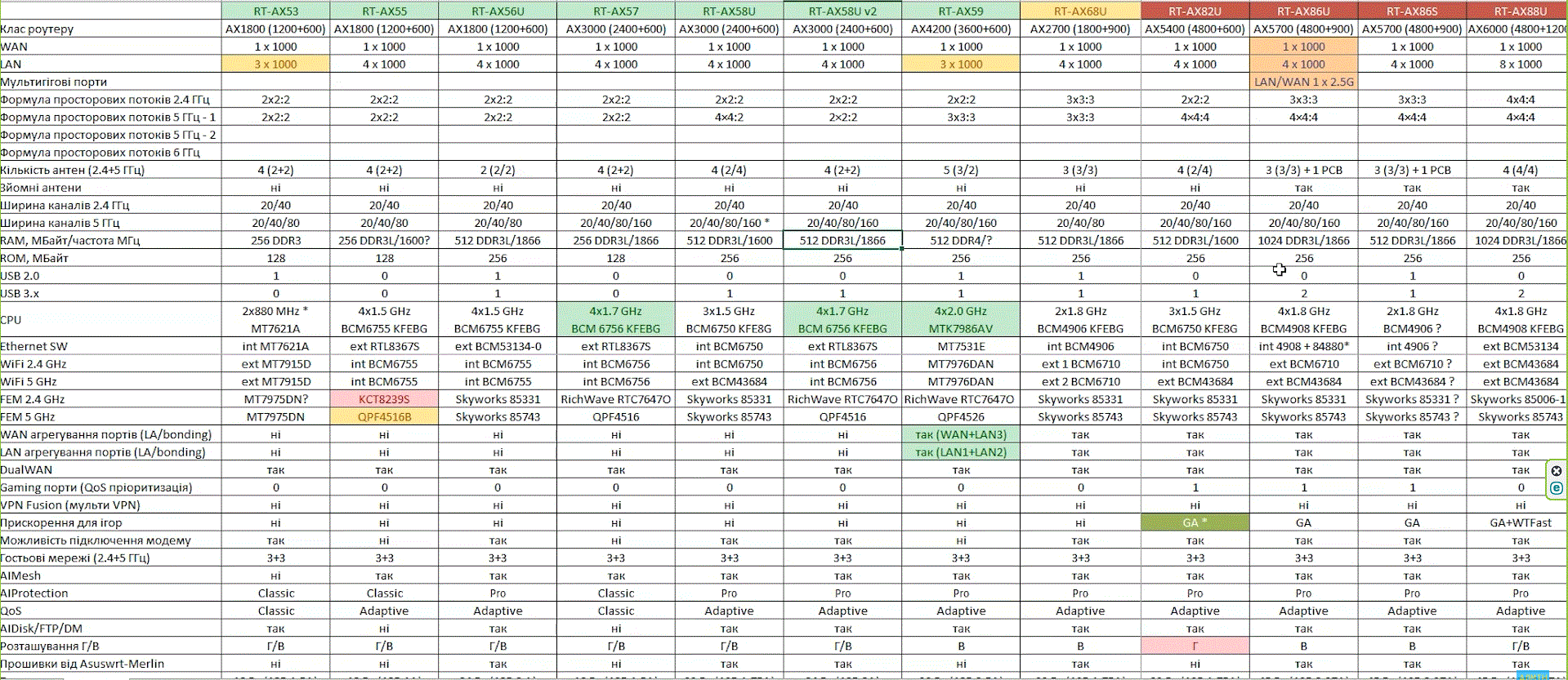 a zajímavá je taktéž srovnávací tabulka HW výbavy routerů Asus, byť již neobsahuje s ohledem na své stáří nové modely.
